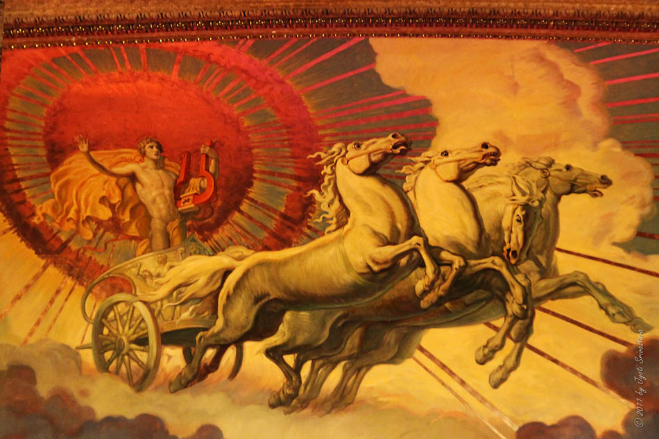 | Apollo in his golden chariot, driving across the sky, representing the rising and setting of the Sun |