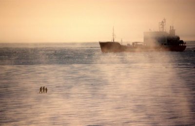TR : The Russian fuel tanker arrived at my hometown to save them (temporarily) from $12 a gallon gas and heating fuel. My brother was hired at 100 bucks an hour to lay an ice road with his cat for two fuel hoses, stretched 700 yards long connecting the tanker to the town tanks (after the shore-ice fasts around the vessel so there won’t be a spill).