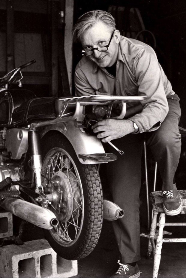 *The late Robert M. Pirsig, actually maintaining his motorcycle. I never saw a pic of the guy while he lived. He looks pretty much like I expected.